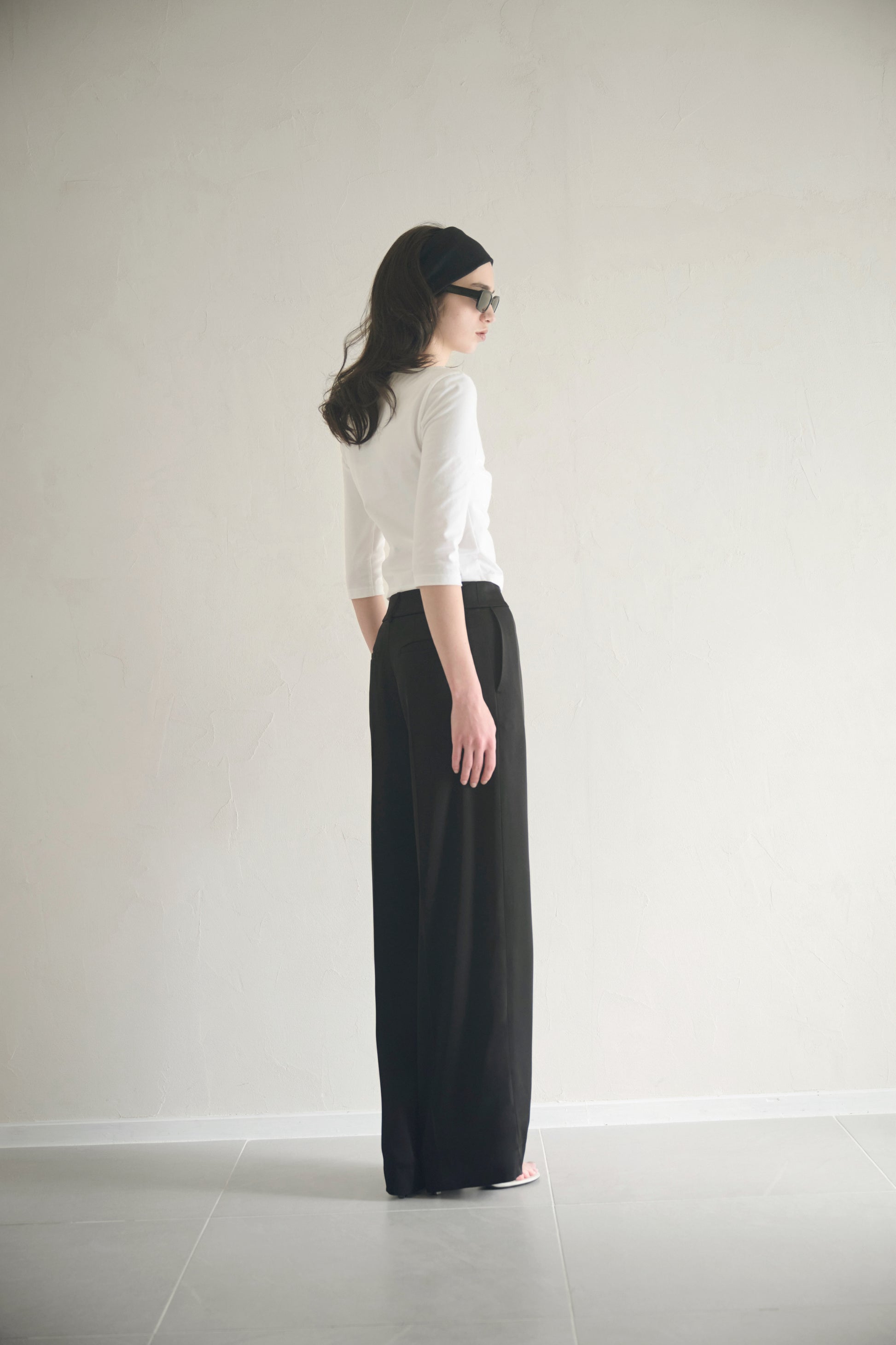 一枚で着た際にも軽やかさがあり、ジャケットのインナーとしてもミニマルな印象を保ちながら着用いただけます。