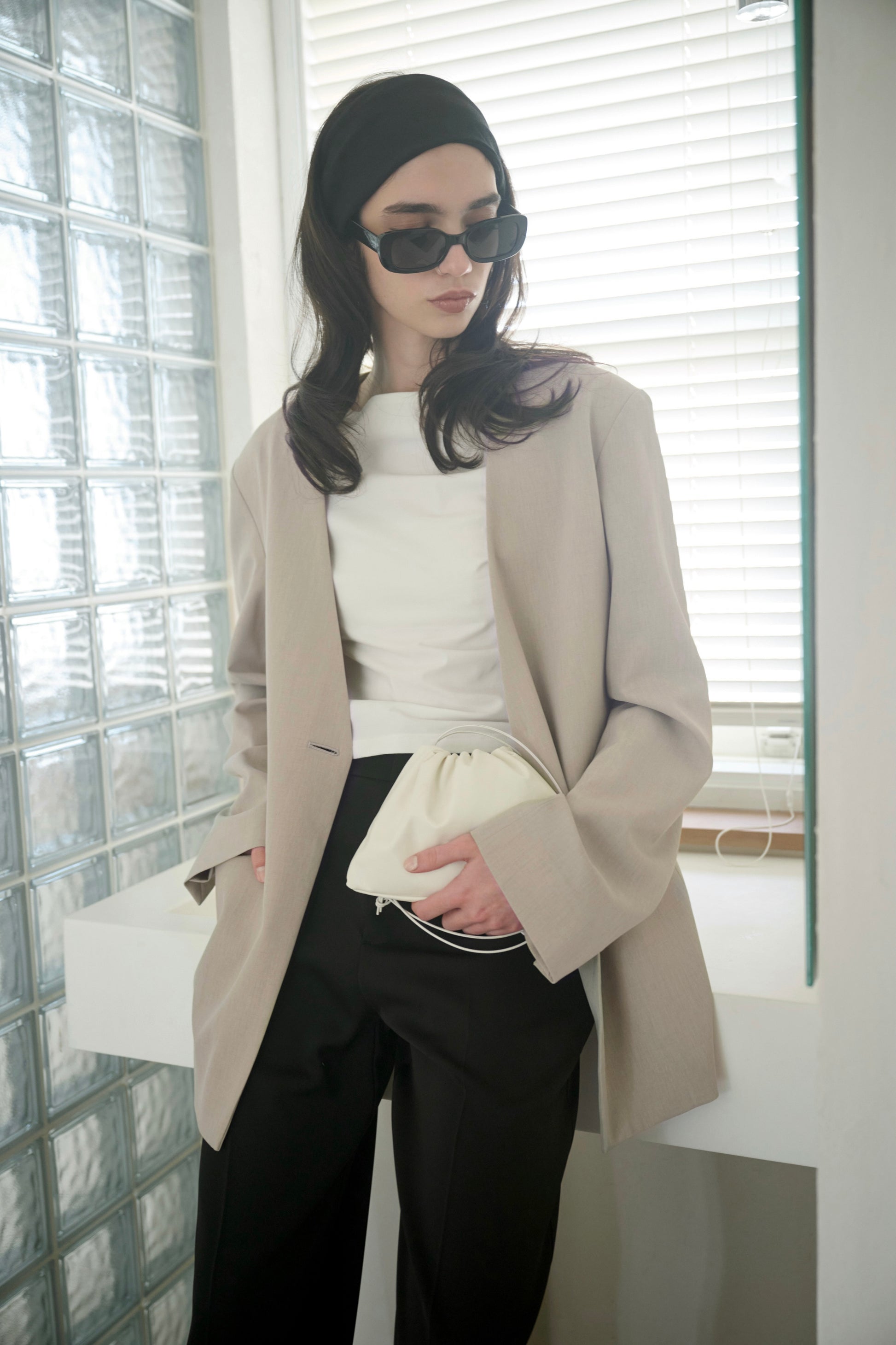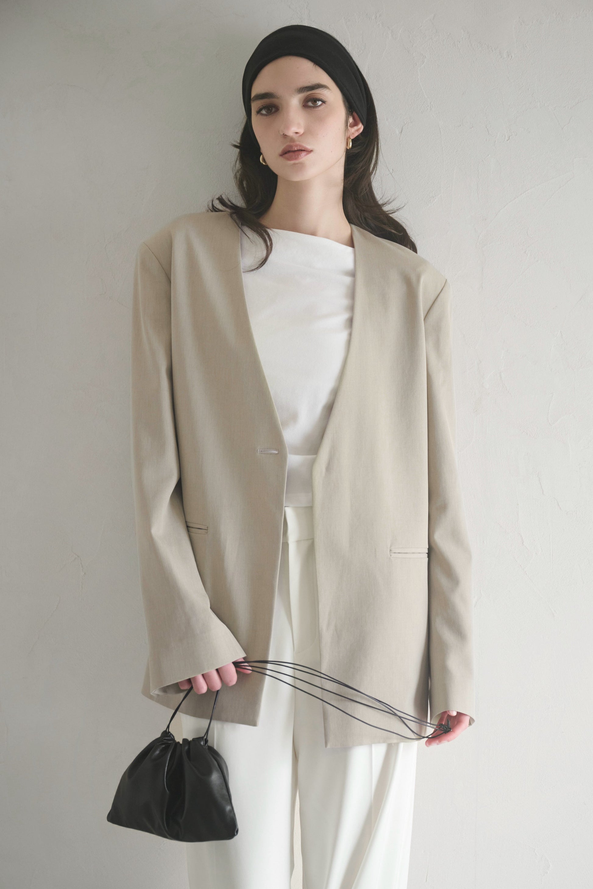 やわらかなフォルムが印象的な、ドローストリング仕様のミニバッグ。ミニマルなスタイリングに自然に溶け込みます。